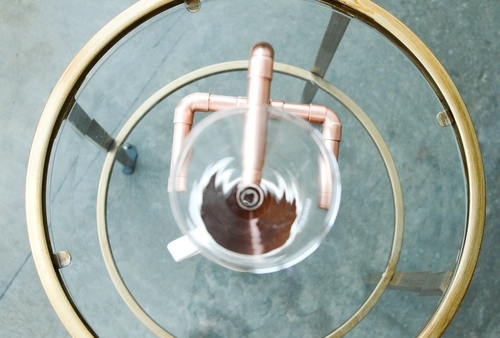 Each drip coffee system is built from hand-polished copper and finished with several coats of clear waterproofing finish.