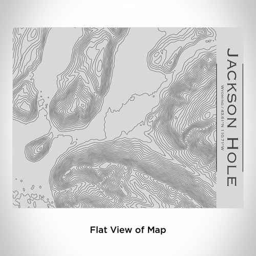 Custom engraved topographic map of Jackson Hole, Wyoming and coordinates on 20oz double walled insulated stainless steel bottle with bamboo top. Measurement – 4in x 4in x 12in.